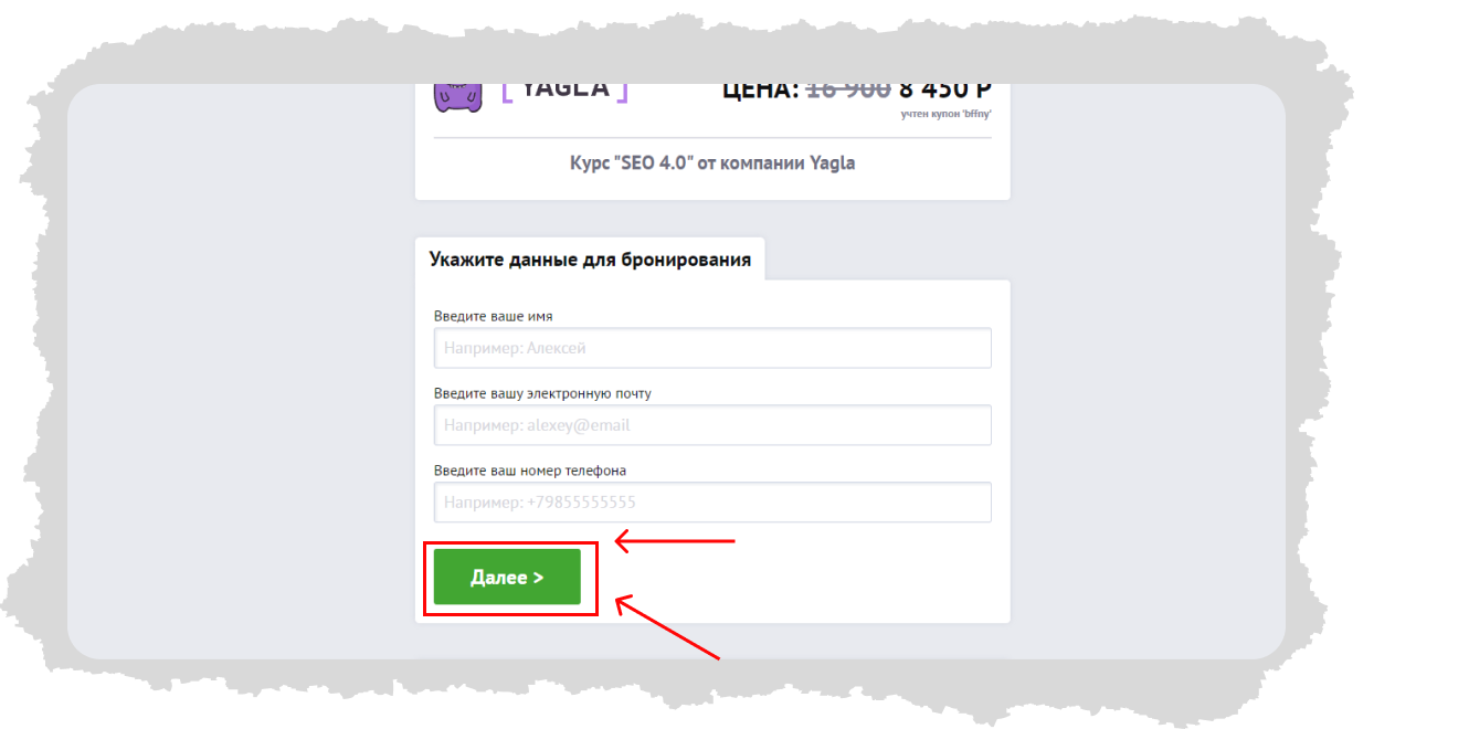 6. Введите свои данные и оплатите курс удобным вам способом