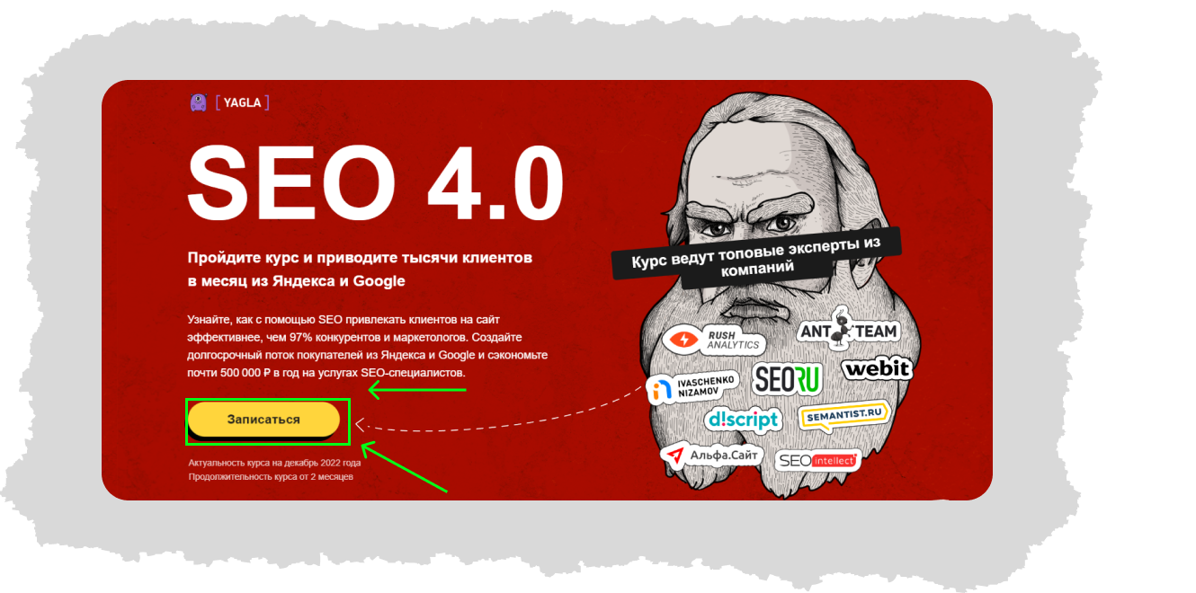 Нажмите на «Записаться» на странице курса «SEO 4.0»