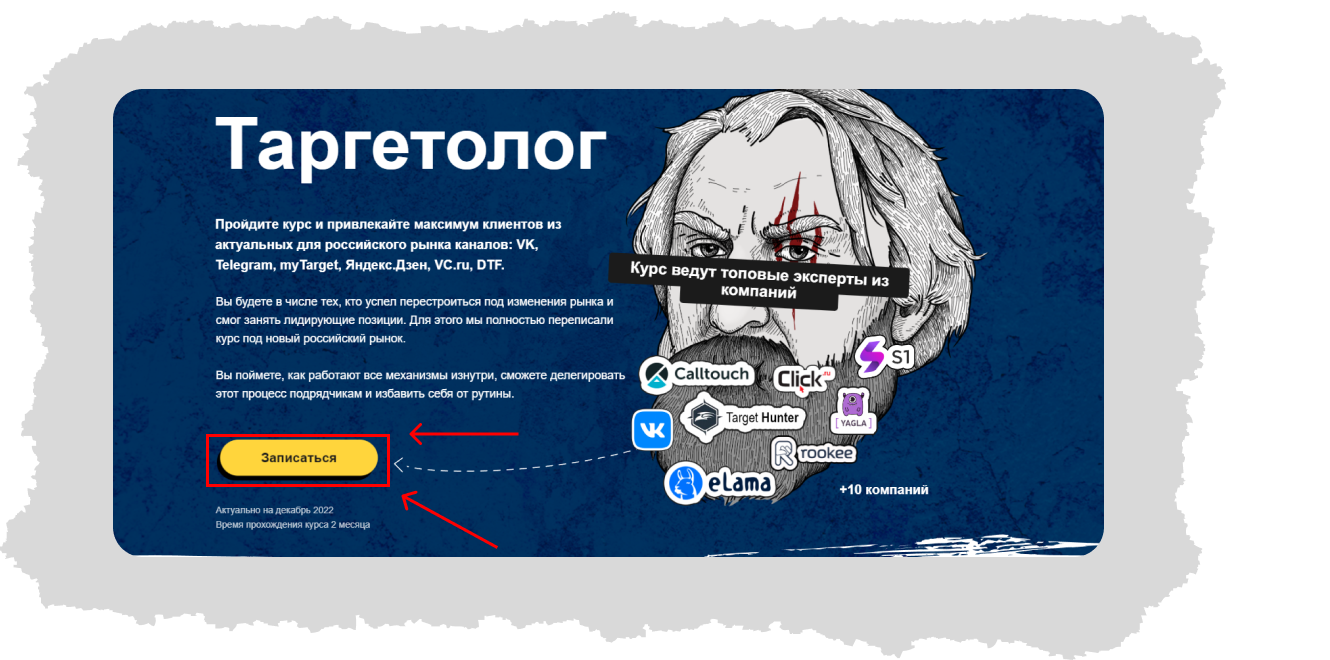 Нажмите на «Записаться» на странице курса «Таргетолог»